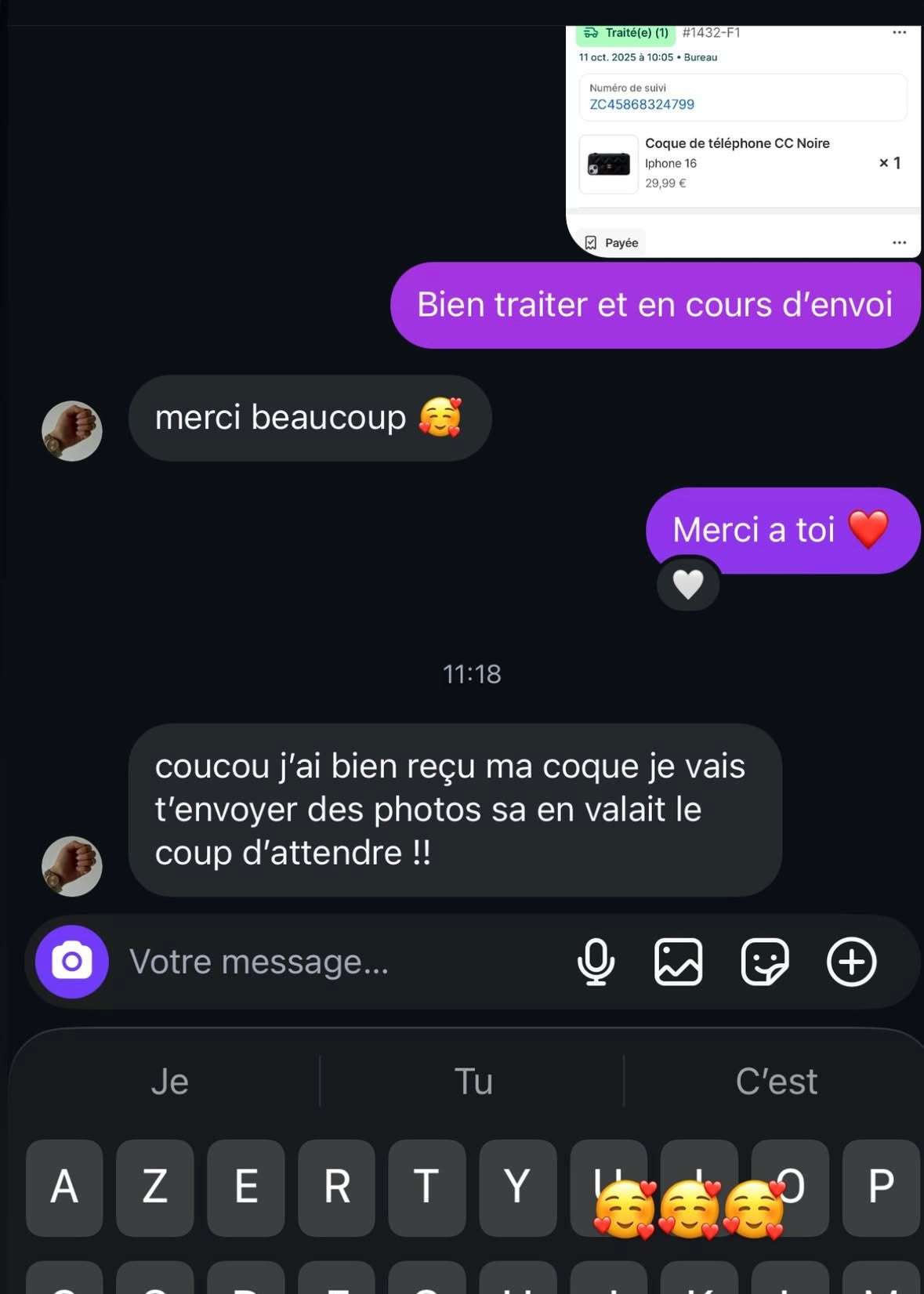 Chaque commande est confirmée par mail et suivie jusqu’à la livraison.